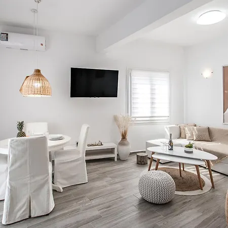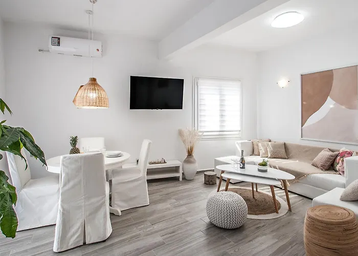 Het Strand van Achladies ligt binnen 2 km afstand van het appartement van 90 m². De Agios Nikolaos Kerk en Klokkentoren bevindt zich ook op slechts 10 loopminuten verderop.